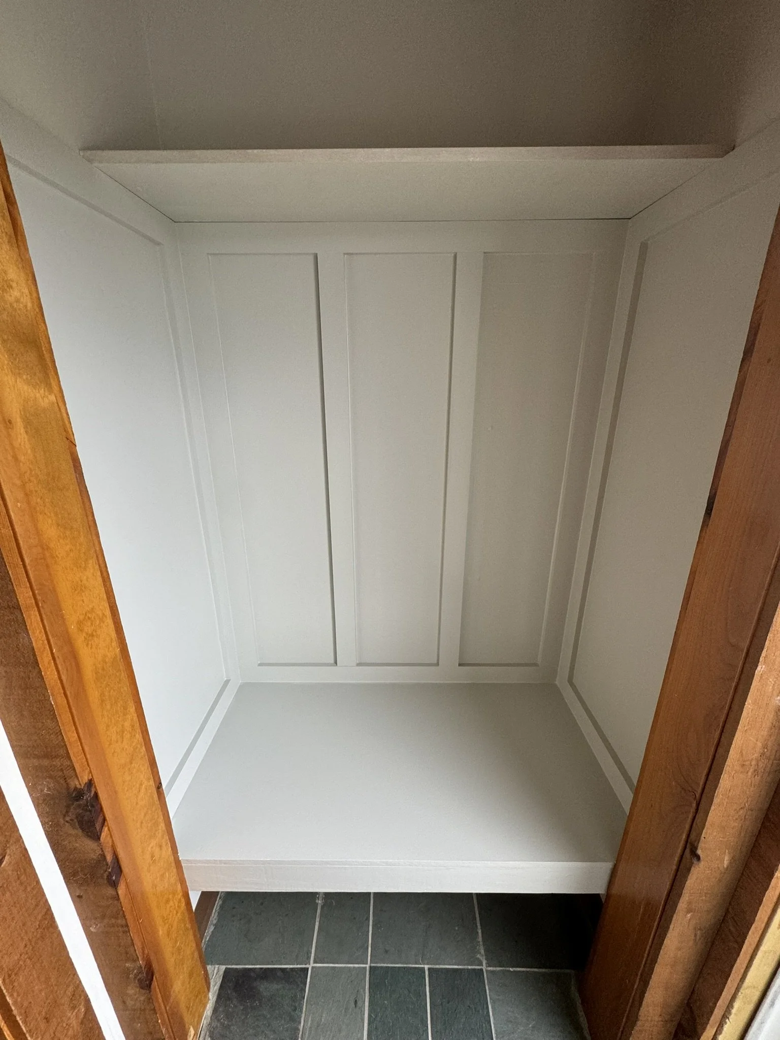 Creative storage solutions for small closet spaces or entryways. Includes decorative designs ideas and finishing.